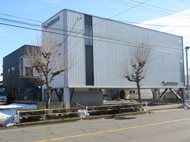 通りから目立つように手前に倉庫棟があります。駐車場は、その建物下と奥にあります。