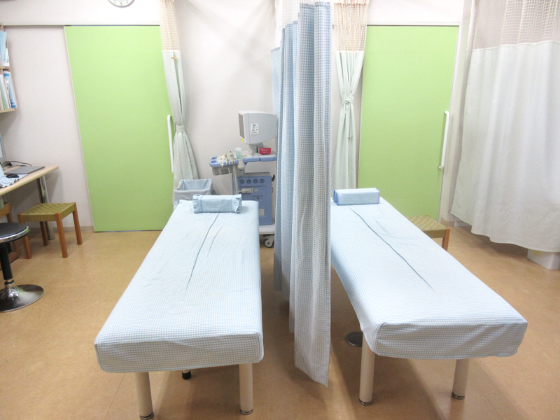 処置だけの方は、リハビリ室内で順番で待っていただいております。